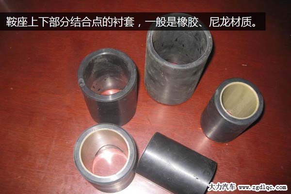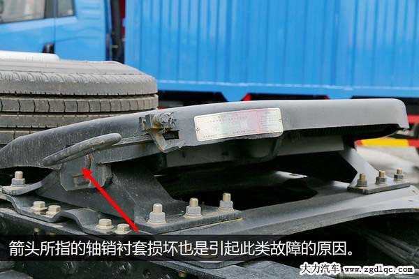 另外牽引鞍座本身上下部分的結(jié)合點(diǎn)也需要觀察,因?yàn)榘白纳舷虏糠质强恳粋(gè)軸銷來固定的,軸銷外有軸套,一般是橡膠或者尼龍材質(zhì)制造的,如果軸套損壞也非常容易出現(xiàn)竄動(dòng)量大導(dǎo)致有沖擊感。