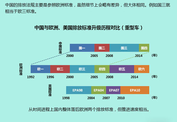 我國的排放標(biāo)準(zhǔn)主要是參照歐洲標(biāo)準(zhǔn),雖然細(xì)節(jié)上略有差異,但大體相同。例如國五就相當(dāng)于歐五標(biāo)準(zhǔn)。目前,我國已經(jīng)到了國四和國五切換之際,但還落后歐美一個(gè)層次,而且現(xiàn)在環(huán)境問題是全球問題,我國又是車輛大國,排放問題受到國際關(guān)注,所以排放升級加快是大勢所趨。