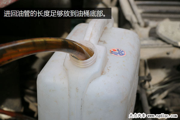 經(jīng)過一番努力,副油箱的出油和回油管都已經(jīng)被拆卸下來,并且管子的長度也足夠放到塑料容器的底部,接下來開始準備測試用的柴油。