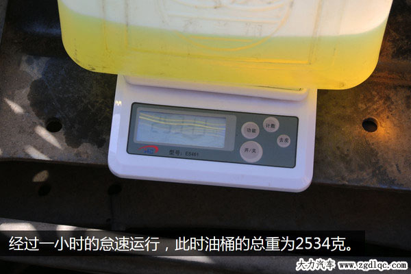 測試時間為一個小時整,到時間后我們立即關閉了發(fā)動機,此時油桶內(nèi)的柴油相比剛開始測試的時候下降了大約一半左右,但這只是目測,最終的精確結果需要通過稱重來測量。