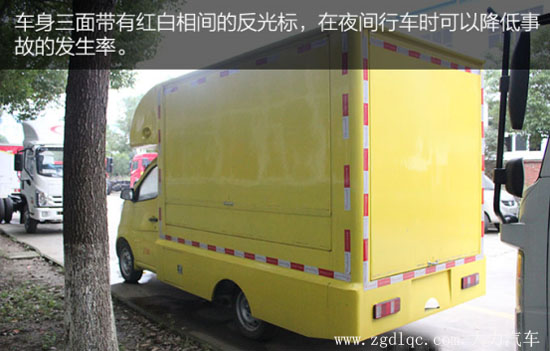 車身三面采用紅白相間的反光標,在一定的光源照射下能產(chǎn)生強烈的反光效果,在夜間行駛時具有警醒的作用,可以達到降低事故的發(fā)生率,保障我們的行車安全。