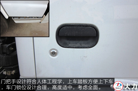 門把手設(shè)計(jì)符合人體工程學(xué),上車踏板方便上下車,車門鎖位設(shè)計(jì)合理,高度適中,考慮全面。