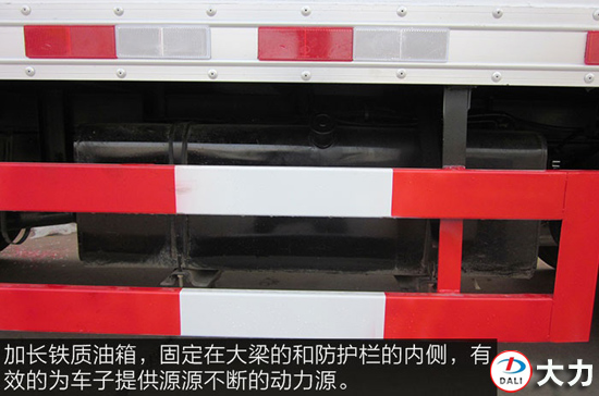 加長鐵質(zhì)油箱,固定在大梁和防護(hù)欄的內(nèi)側(cè),有效的為車子提供源源不斷的動力源。