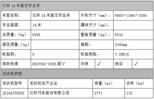 江鈴14米高空作業(yè)車詳細配置及參數(shù)說明 |