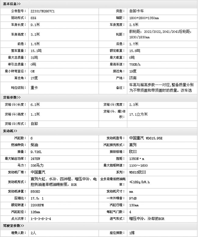重汽HOWO重卡自卸車(ZZ3317N2867C1)