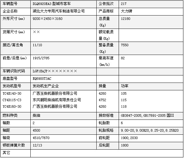 大力牌客車技術(shù)參數(shù)說(shuō)明