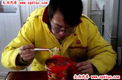 剛下夜班的加油員王瑋匆匆吃碗泡面后繼續(xù)上班