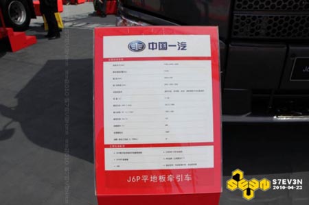 在2010年北京車展上,解放又展出了一輛平地板的J6,配置與第1000萬(wàn)輛下線儀式上的那輛相同。只是涂裝顏色不同。但這次又被命名為“J6P平地板牽引車”。