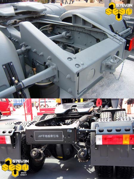 解放J6HC的車架結(jié)構(gòu)似乎是來(lái)源于三菱FUSO。而驅(qū)動(dòng)橋則是來(lái)源于UD(當(dāng)年的日產(chǎn)柴)的485橋。如今的J6H仍然匹配485橋,車架似乎改進(jìn)了。