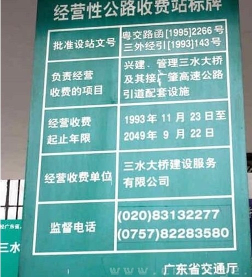 廣東佛山三水大橋,收費起止年限從1993年11月23日到2049年9月22日,時間長達(dá)55年多。此橋收費引起群眾不滿。據(jù)了解,三水大橋工程投資約4.56億元,截至去年收費達(dá)7.5億元人民幣。目前三水大橋已進(jìn)入純盈利期,如按現(xiàn)在路費收入每天10萬元左右計算,到2049年將有近14億元收入。