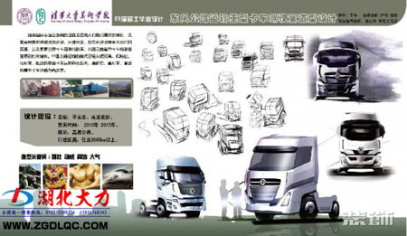 我們?cè)谡搲吹揭唤M東風(fēng)的概念卡車,其中還有幾張油泥模型。依然能夠看到東風(fēng)天龍的影子,后來從網(wǎng)上查證,這只是清華大學(xué)美術(shù)學(xué)院09年畢業(yè)的工業(yè)設(shè)計(jì)系一名研究生作品,不知道這會(huì)不會(huì)是D760車型的雛形。