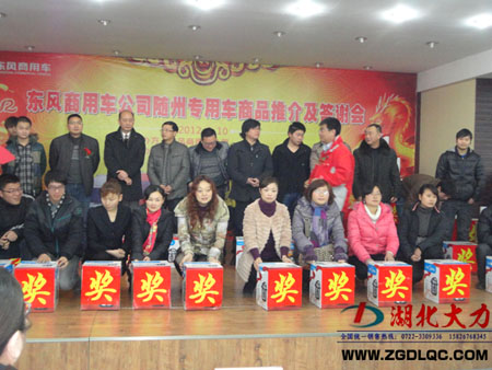 一元復始,萬象更新。一年一度的東風商用車新年答謝會暨2012年新品推介會今日在歷史文化名城隨州隆重召開。來自隨州市曾都區(qū)區(qū)政府、東風商用車市場銷售總部、湖北商務代表處、隨州各大改裝經銷企業(yè)以及駐全國市場銷售人員近800名代表出席會議。這次會議由東風商用車湖北商務代表處和湖北圓通聯(lián)合主辦,會議采取團拜、產品宣講、頒獎和抽獎相結合的方式展開。大會向湖北大力尚傳書等2名代表頒發(fā)優(yōu)秀業(yè)務一等獎,向湖北成龍威劉永財等5名代表頒發(fā)優(yōu)秀業(yè)務二等獎,向湖北程力公司程阿羅等10名代表頒發(fā)優(yōu)秀業(yè)務三等獎,同時通過大屏幕現(xiàn)場抽出60名幸運獎。