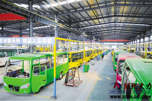 大力客車瞄準(zhǔn)市場(chǎng)需求,產(chǎn)品開發(fā)以校車為主,贏得商機(jī)。目前公司每月接到校車訂單400臺(tái)以上,滿負(fù)荷生產(chǎn)仍供不應(yīng)求。圖為忙碌的客車總裝車間。 (李文軍 攝)