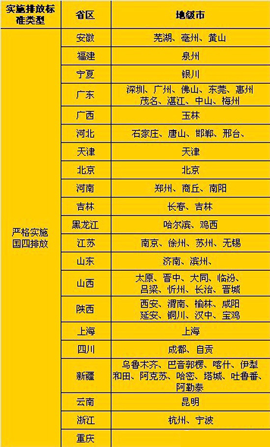 嚴格實施國四的城市