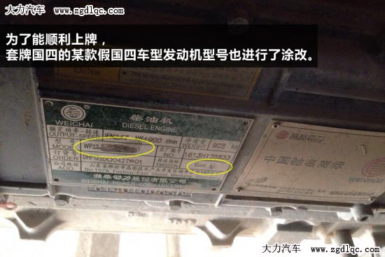 近日,有浙江省的經(jīng)銷商抱怨稱:當(dāng)他們正在忙著推廣國四產(chǎn)品的時(shí)候,卻發(fā)現(xiàn)周圍都在銷售用國三車型套牌當(dāng)國四車型進(jìn)行銷售。為了能夠順利上牌,非國四的發(fā)動(dòng)機(jī)銘牌也都進(jìn)行了涂改。